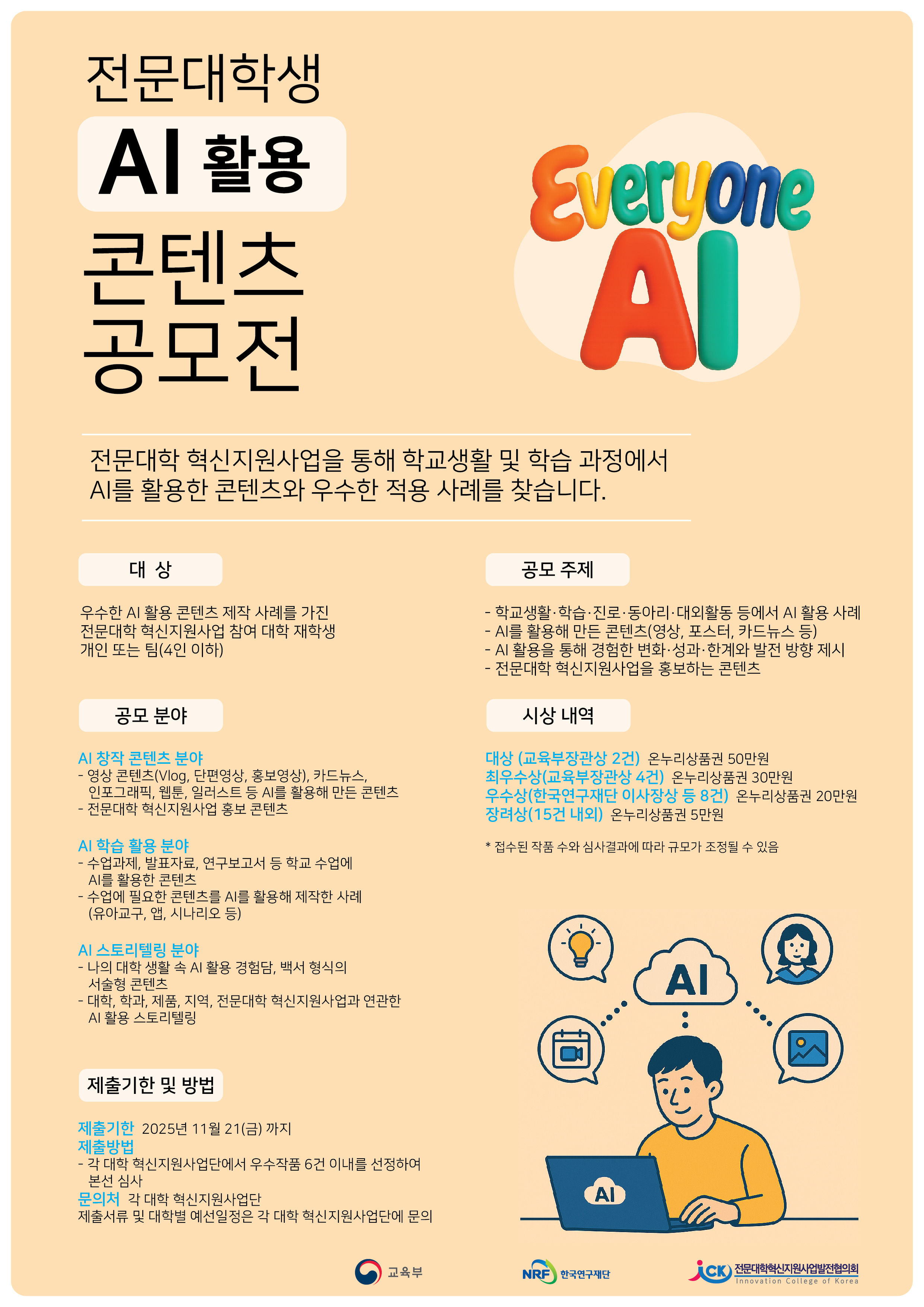 2025년 전문대학 혁신지원사업 AI 활용 콘텐츠 공모전 안내